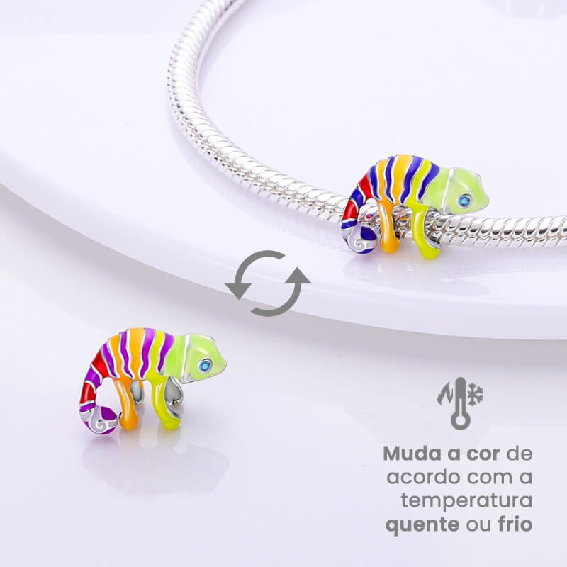 O Camaleão tem um esmalte termocrômico especial que muda de cor em resposta às mudanças de temperatura quente ou frio.